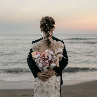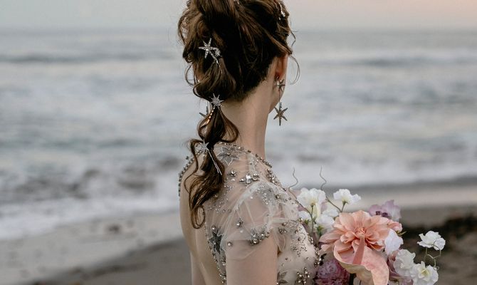 のが海の中の泡をイメージしており、 バージンロードも砂浜の白とキラキラ感が可愛くて