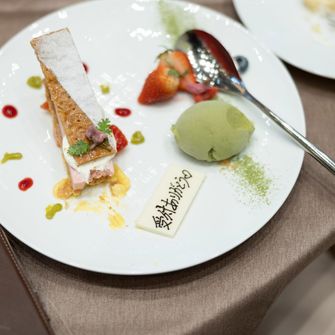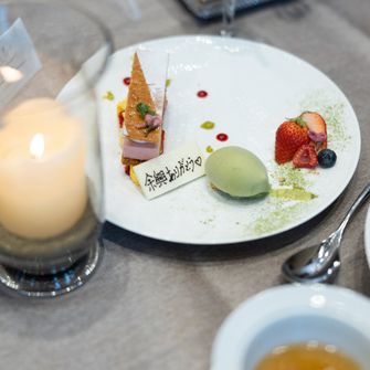 3/21挙式でちょうど桜のシーズンだったことと、コロナ禍でなかなかお花見もできない年が続いていたので、大切なゲストとお花見気分を味わえたらという想いを込めて、桜にしています。