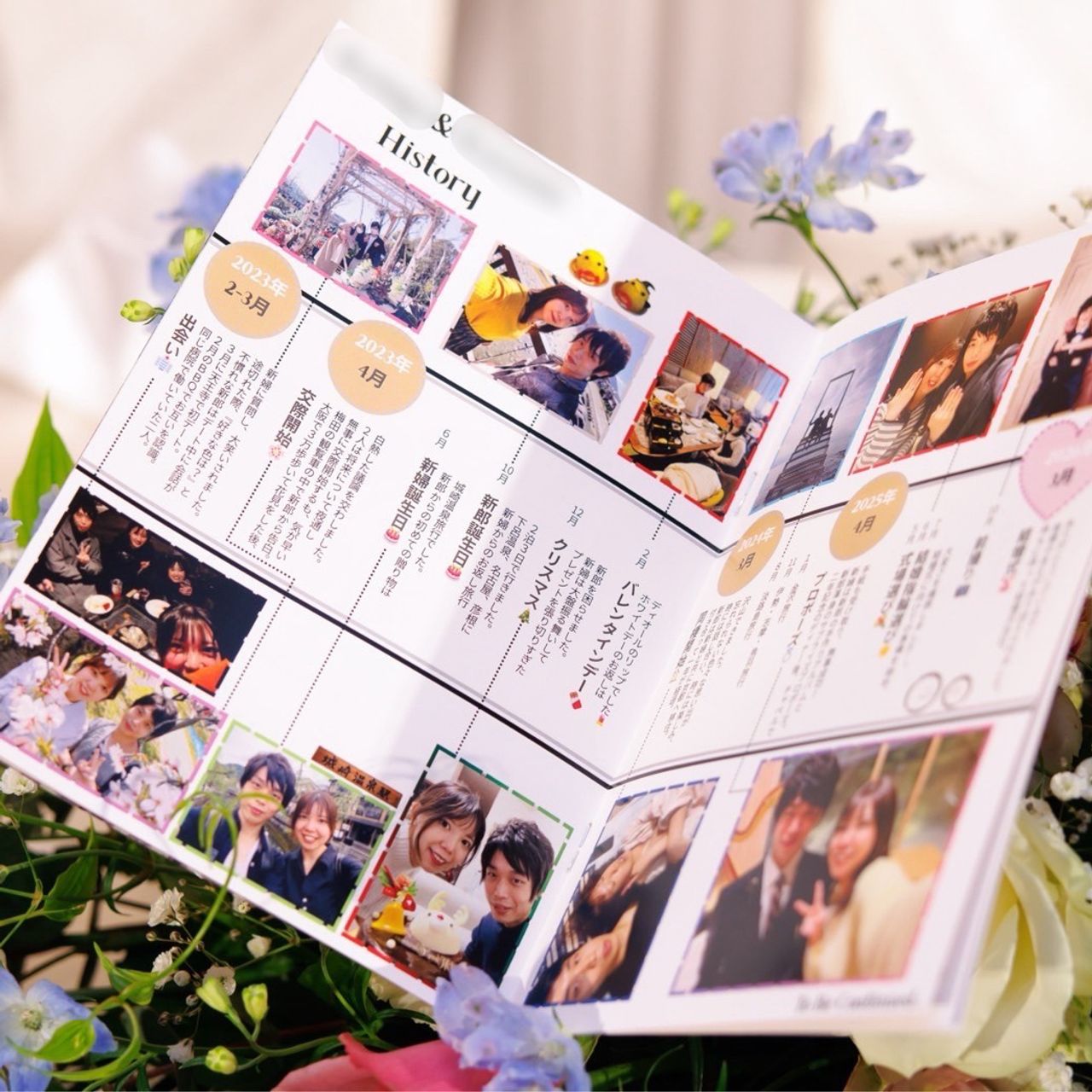 オープニングムービー・プロフィールムービー・席札・メニュー表や席次表含むプロフィールブック・余興クイズの小道具・プチギフトのラッピングなど、自作できるものは可能な限り自作しました。