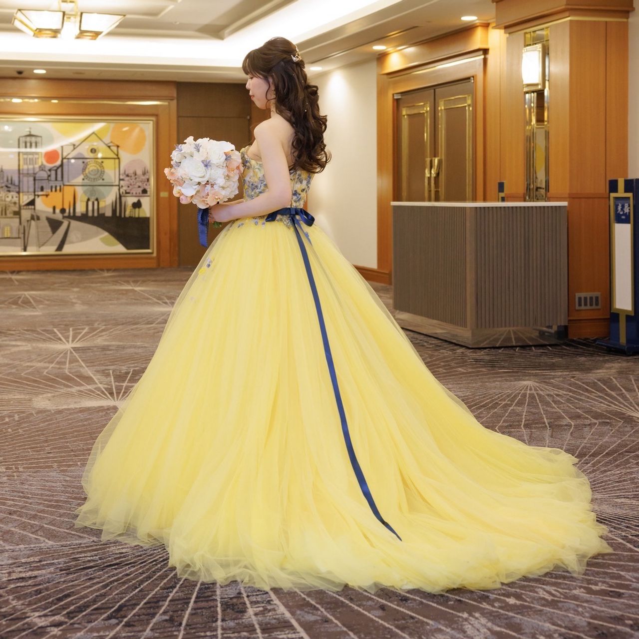 ドレス選びの際、黄×青の反対色の構成に一目惚れしました。試着に同行してくれた母や姉からも好評だったので、このドレスに決めました。