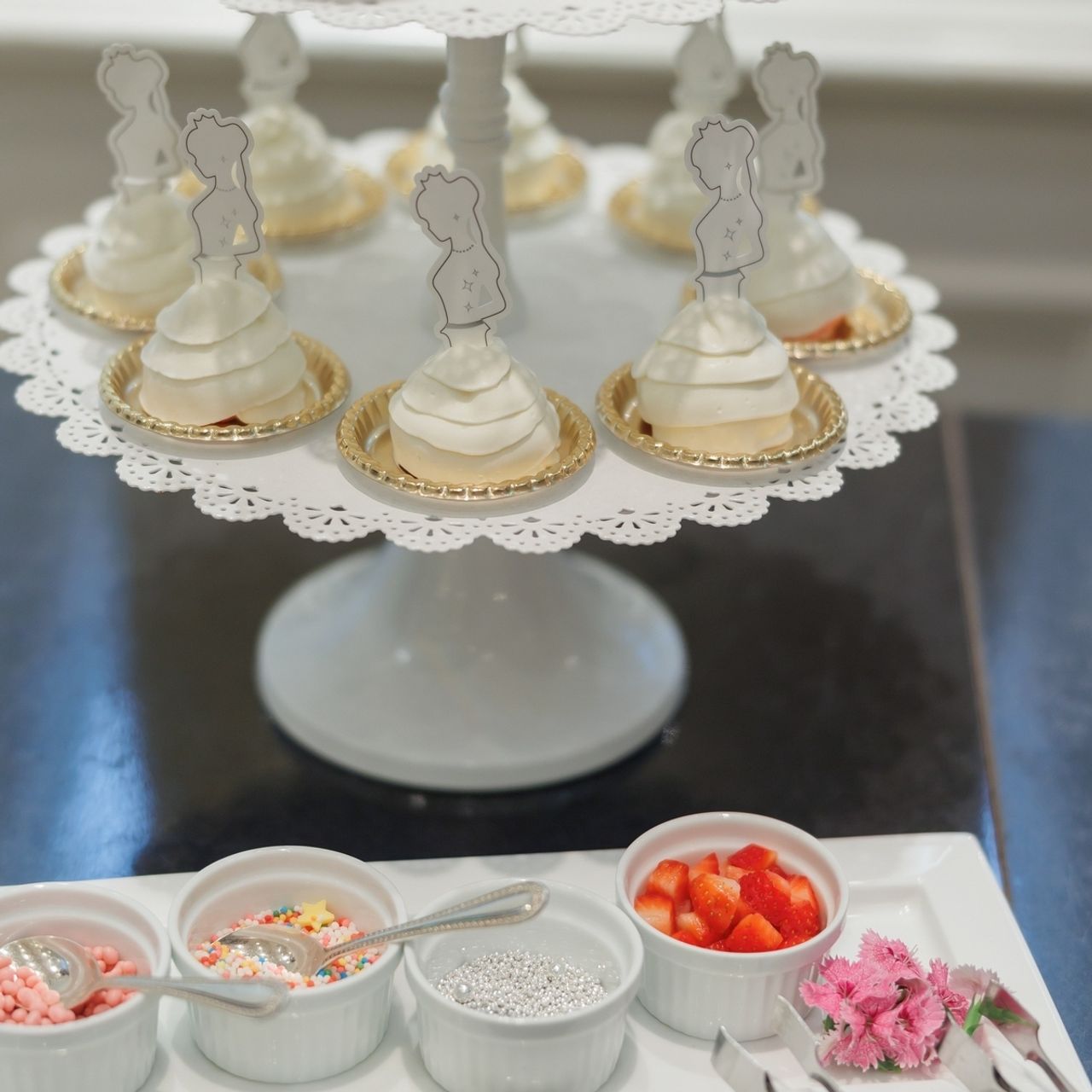 デザートビュッフェの1つは、ドレスをイメージしたケーキで、トッピングを自分でデコレーションをできるようになっており、みんな思い思いのドレスケーキを作って楽しんでいただけました。