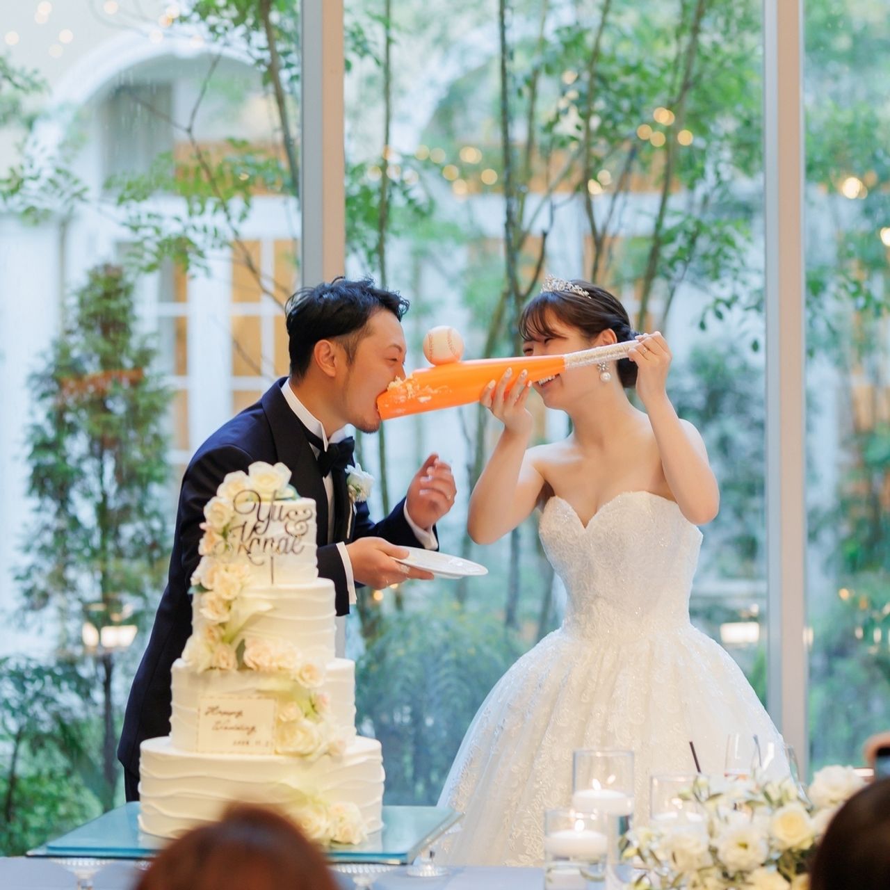 新郎が野球、新婦が旅行好きなので、ところどころに野球×旅行を取り入れながらもカジュアルになりすぎないよう意識しました。