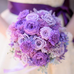 テーマカラーのホワイト、グリーン、パープルは、ブーケや装花などに取り入れ、