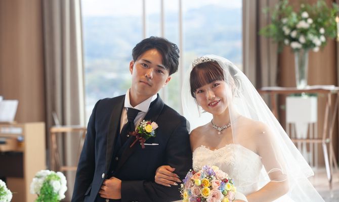 式場を決める際は、会場の美しさはもちろん、チャペルから見える山形らしい景色に惹かれたことや、契約特典が整っていた点、親族の互助会を利用できた点が決め手となりました。