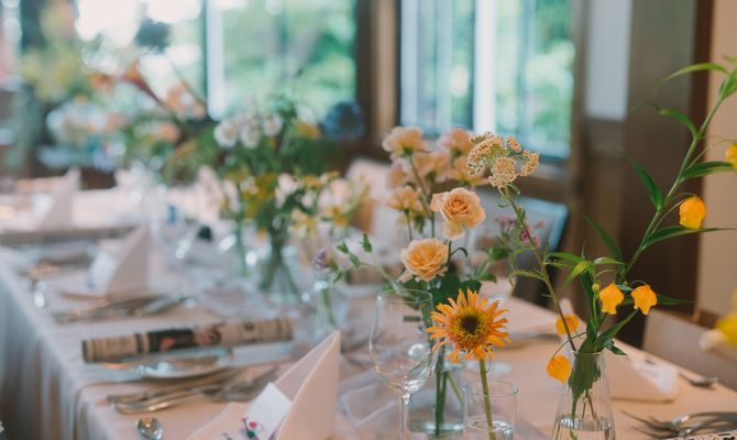 テーマは『tipsy』です。お酒が好きな私たちなのでゲストの皆さまにも“ほろ酔い気分で楽しんでね”という想いを込めました。エスコートアイテムはオープナーにして乾杯のときに使ってもらいました。乾杯ドリンクはもちろん鎌倉ビールです。笑顔溢れるアットホームな空間づくりを心がけました。