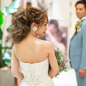 オリジナルにしたくて、ドレス、ヘアメイク、装花、全てをオーダーで、人と被らないよう私たちらしく🥰