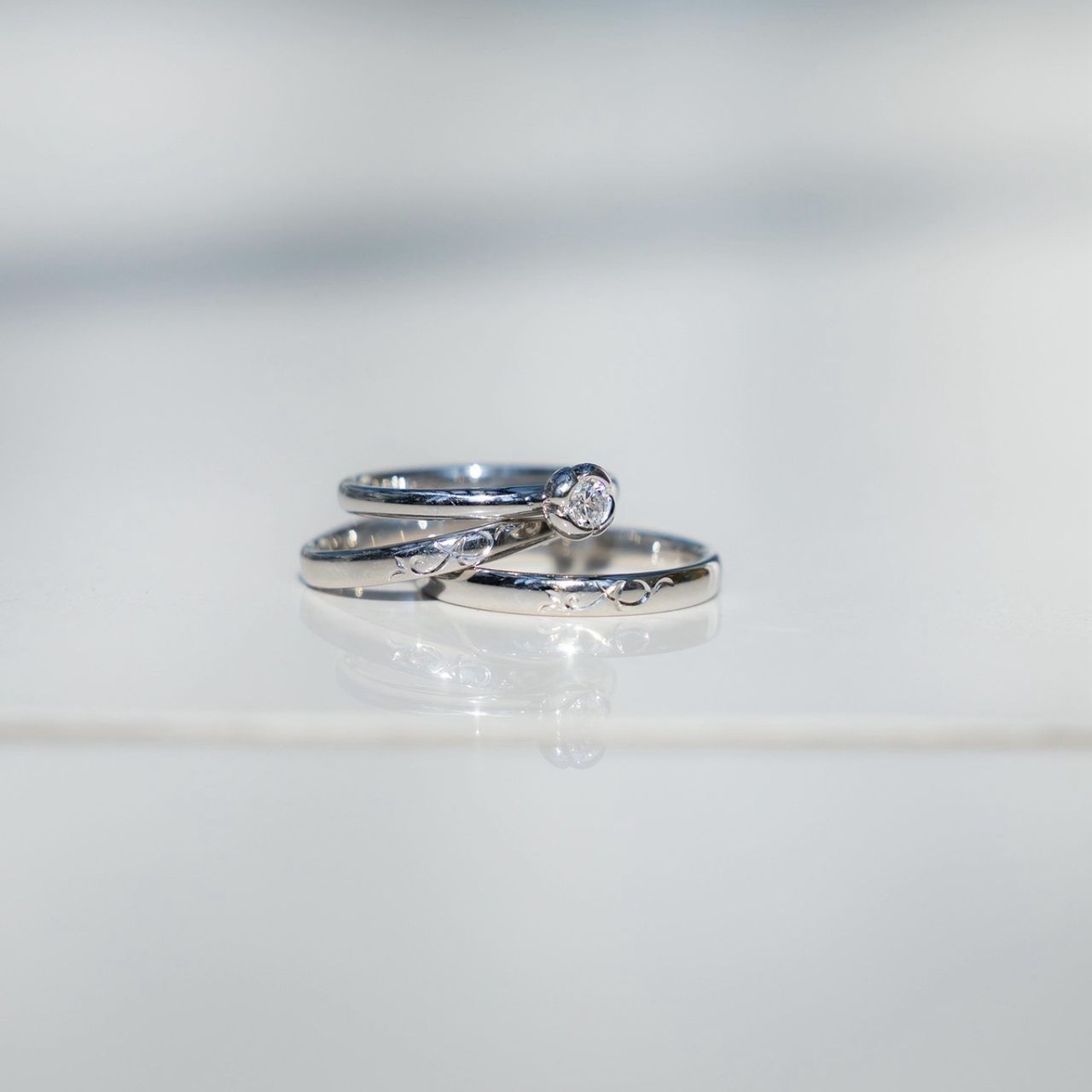 結婚指輪は「ケイウノ」でオリジナルの刻印を入れてもらったものです。