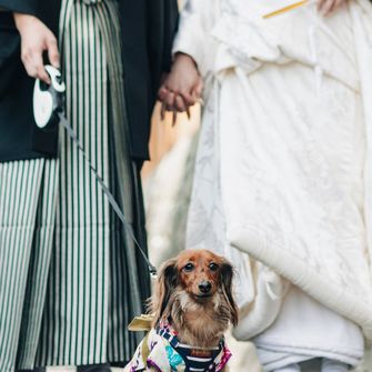 私たち夫婦の大切な愛犬をたっくさん取り入れました。招待状から結婚証明書、リングドック、プロフィールブックなどあらゆるところにダックスフンドを取り入れています。こちらの会場にした理由は、もちろんペットOKの式場を探していたのですが、フェアの時に担当してくださった方がすごく良い方でここがいい!と即決でした