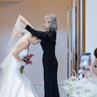 3人が主役で行いたかったので、新郎と一緒に息子にはリングボーイとして入場してもらっています!