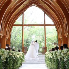 緑に囲まれた素敵なチャペルでとっても綺麗に写真が残せました。音が響きやすい構造になっているそうで、生演奏もとっても素敵でした。