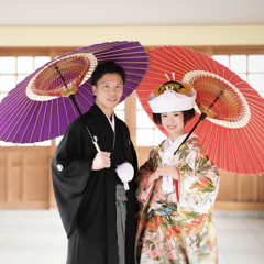 白地に大柄の赤い花が描かれている色打掛にしました。 白地の部分はラメがかっていたので、披露宴会場でも映えました。 底が高めの草履は自前で用意しました。