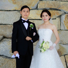 バージンロードも長かったので、当日歩いていてやっと本番を迎えたなという実感を深く持つことができました。バージンロードの装花が無いと寂しいかなと思っていましたが、無くても全く寂しく無く違和感もありませんでした。特に引きの写真が気に入っています!