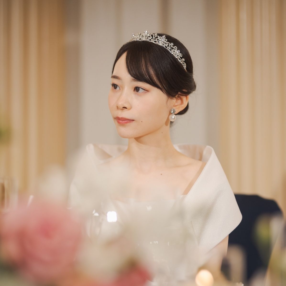 顔立ちに合うように低めのティアラにしました。