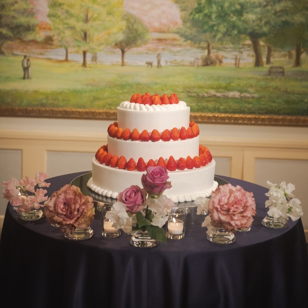 3段のケーキにいちごをたくさん乗せてもらいました!