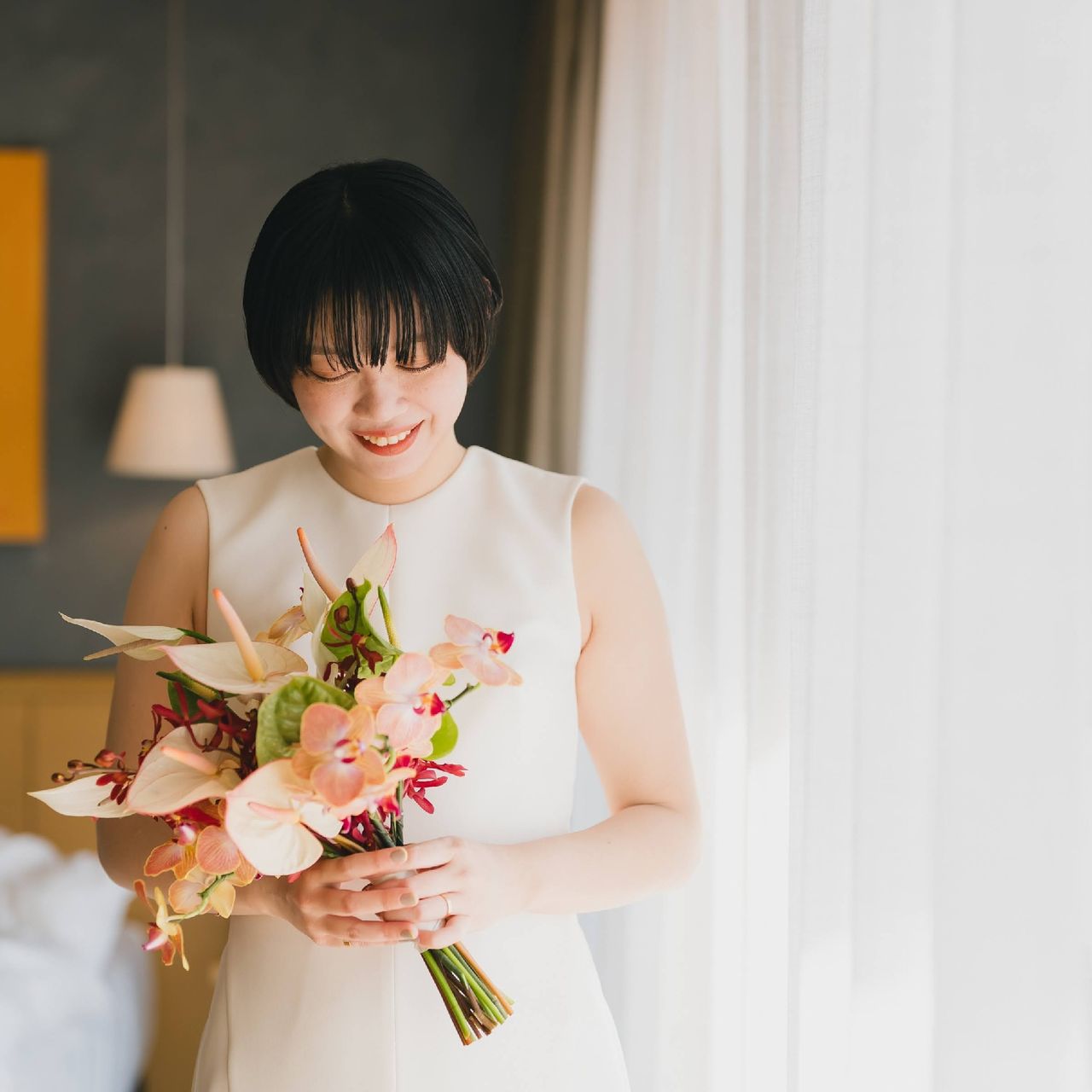手元のショットでも爪が目立ちすぎず、ブーケがちゃんと主役に写ってて良かったです。