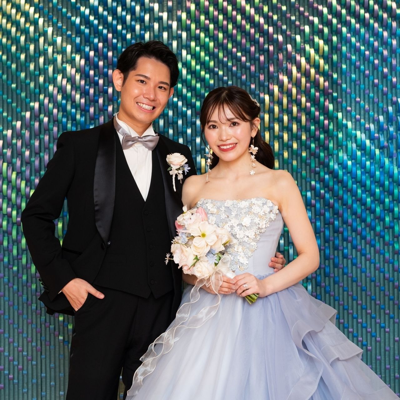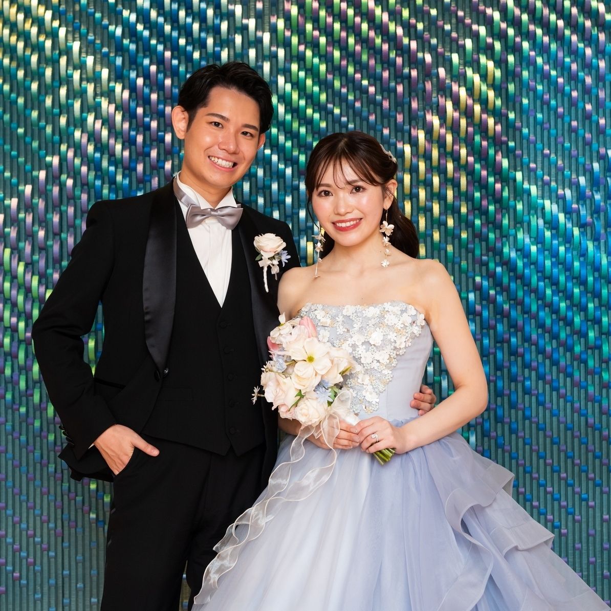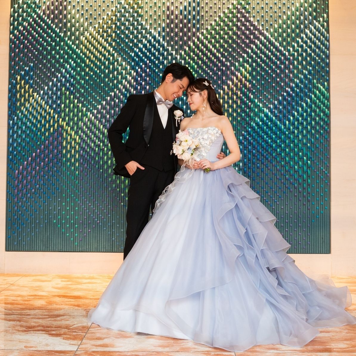 一目惚れしたカラードレスです。色々着てみましたが、直感で選んだドレスがとても自分に似合っていました。胸元のビジューとアシメトリーなフリルが唯一無二のデザインでお気に入りです。