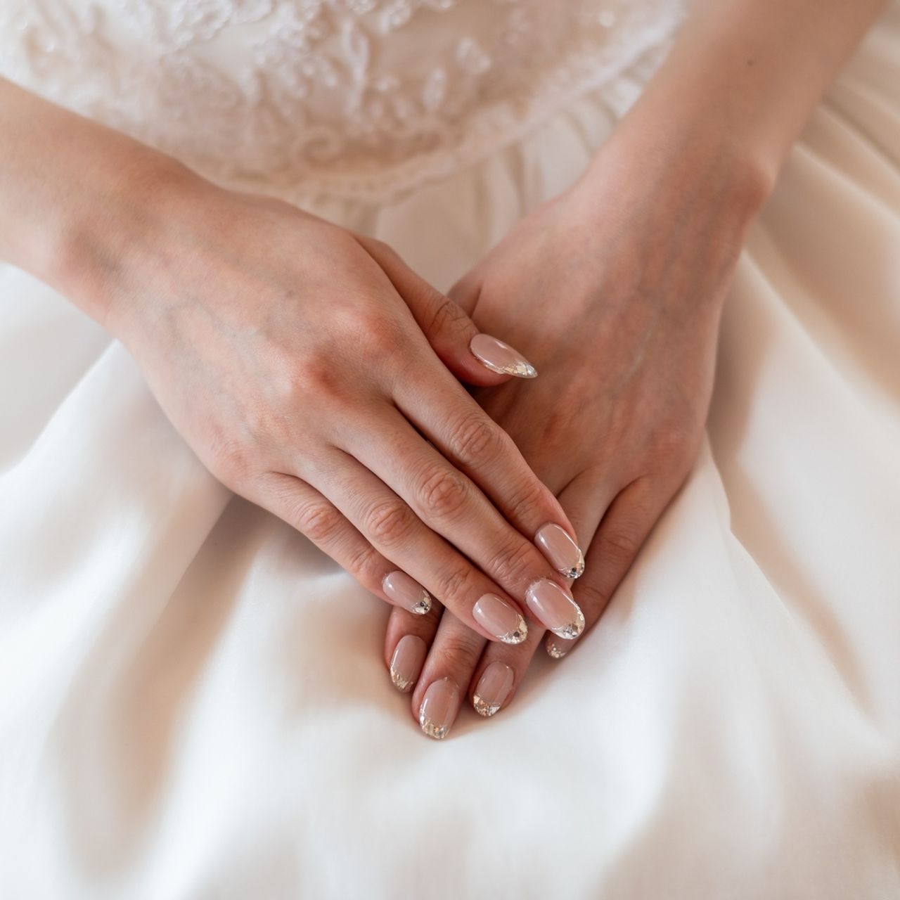 職業柄ジェルネイルができなかったので、チップにしました。ピンクベースのガラスフレンチです。