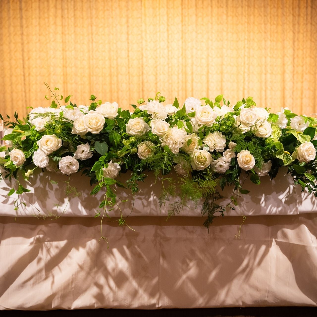節約のため、生花は高砂だけにしています。白とグリーンをベースにお願いしました。