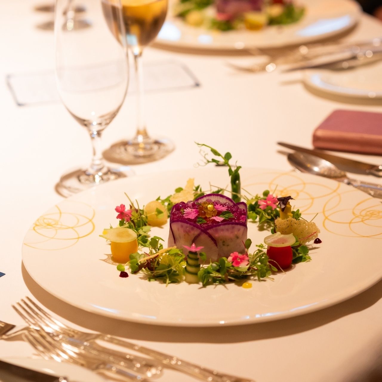ザ・ペニンシュラ東京では自分たちでオリジナルのコースを作ることができます。私たちはシェフと相談しながら、好物や地元の名産を取り入れたコースを作りました。
