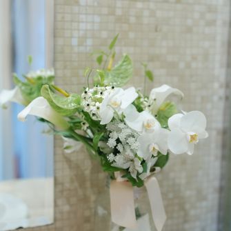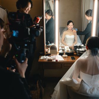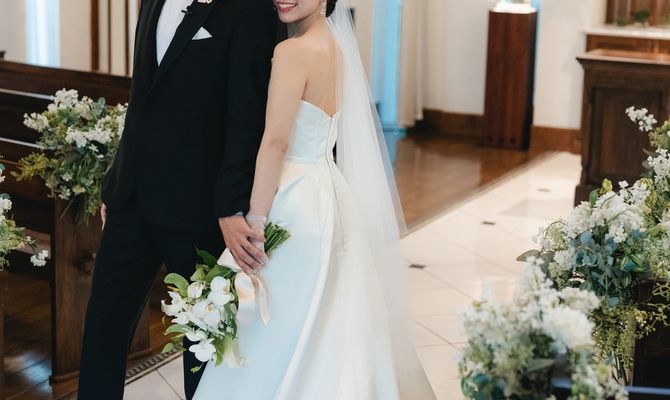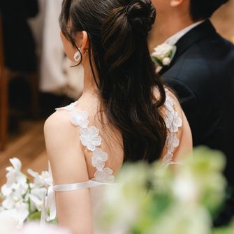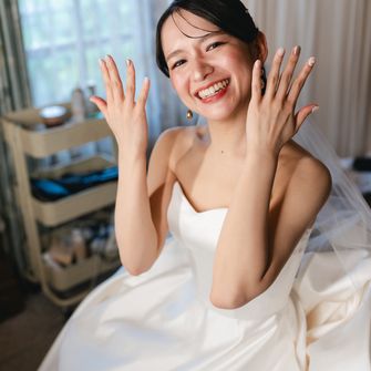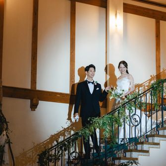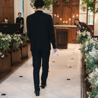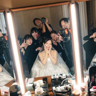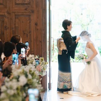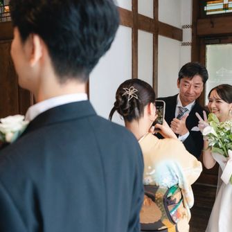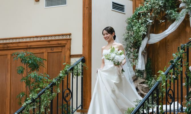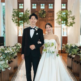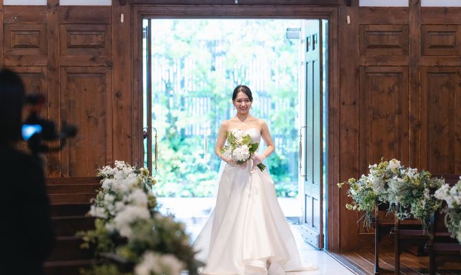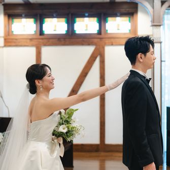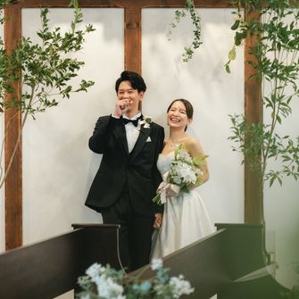 オランジュベールの木造のチャペルに一目惚れして決定しました。プランナーさんを始めとする素敵なスタッフの方々との出会いにも感謝をしています。当日は改めて想いをひとつにするために、式の前に私たちとスタッフの方々全員で円陣を組みました!
