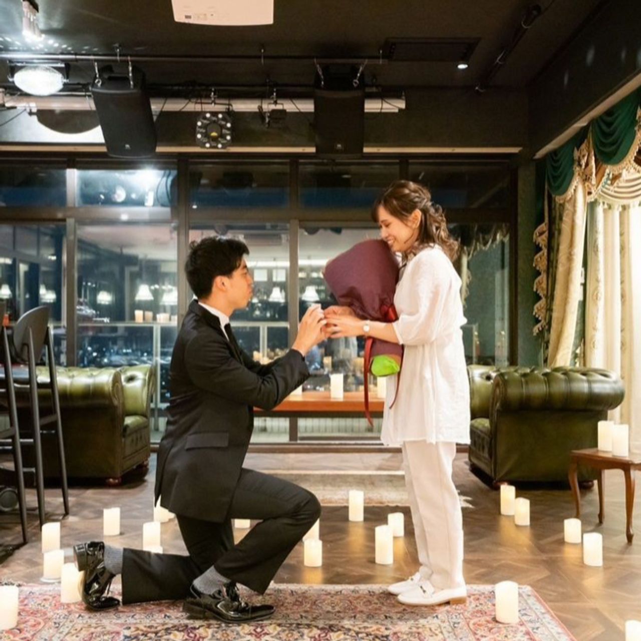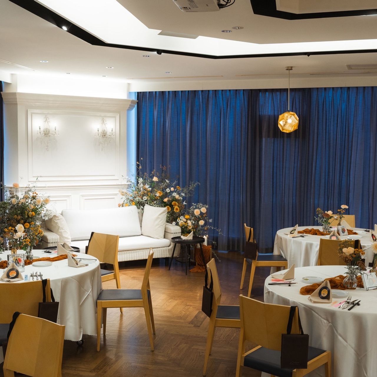 挙式は神聖さを出すために、室内でカーテンを全て閉め、キャンドルとライトを使っています。
