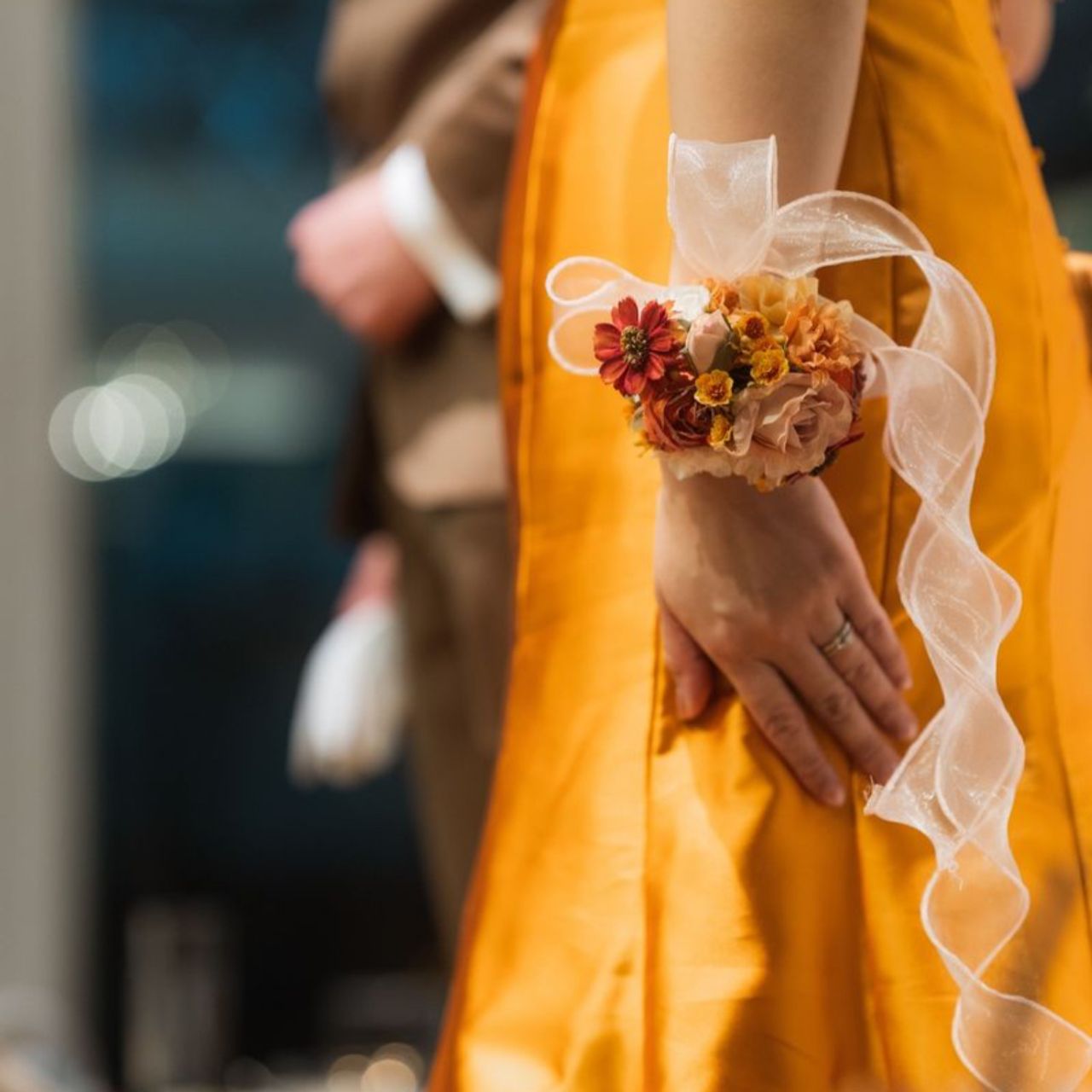 「着たことない色」という夫からのリクエストを受け、黄色を着てみると意外としっくりきたので、そのまま黄色のドレスになりました。