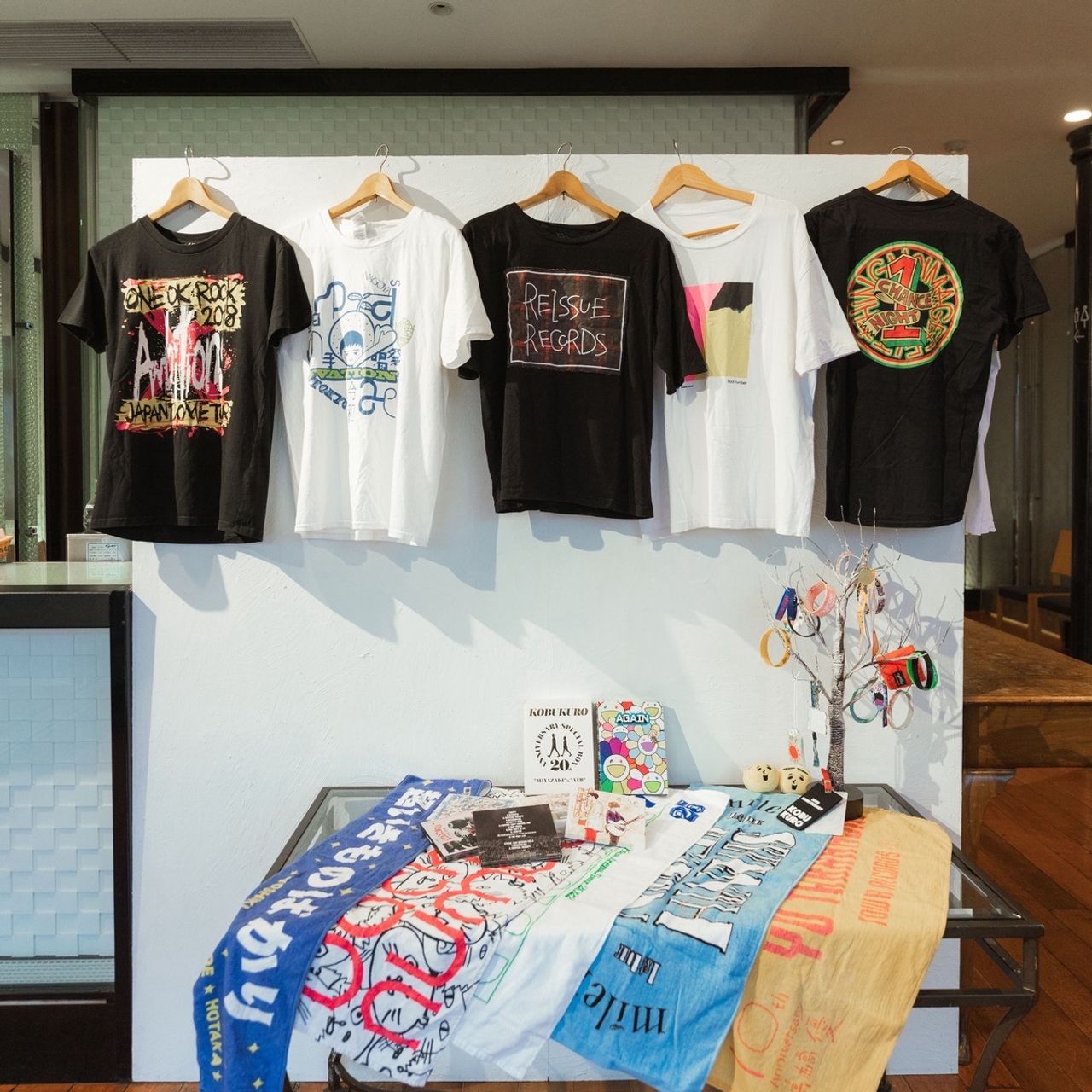 世界観を表現すべく、ライブTシャツやタオル、CDのディスプレイ・チケット風席札・ペンライト・生演奏まで取り入れています。