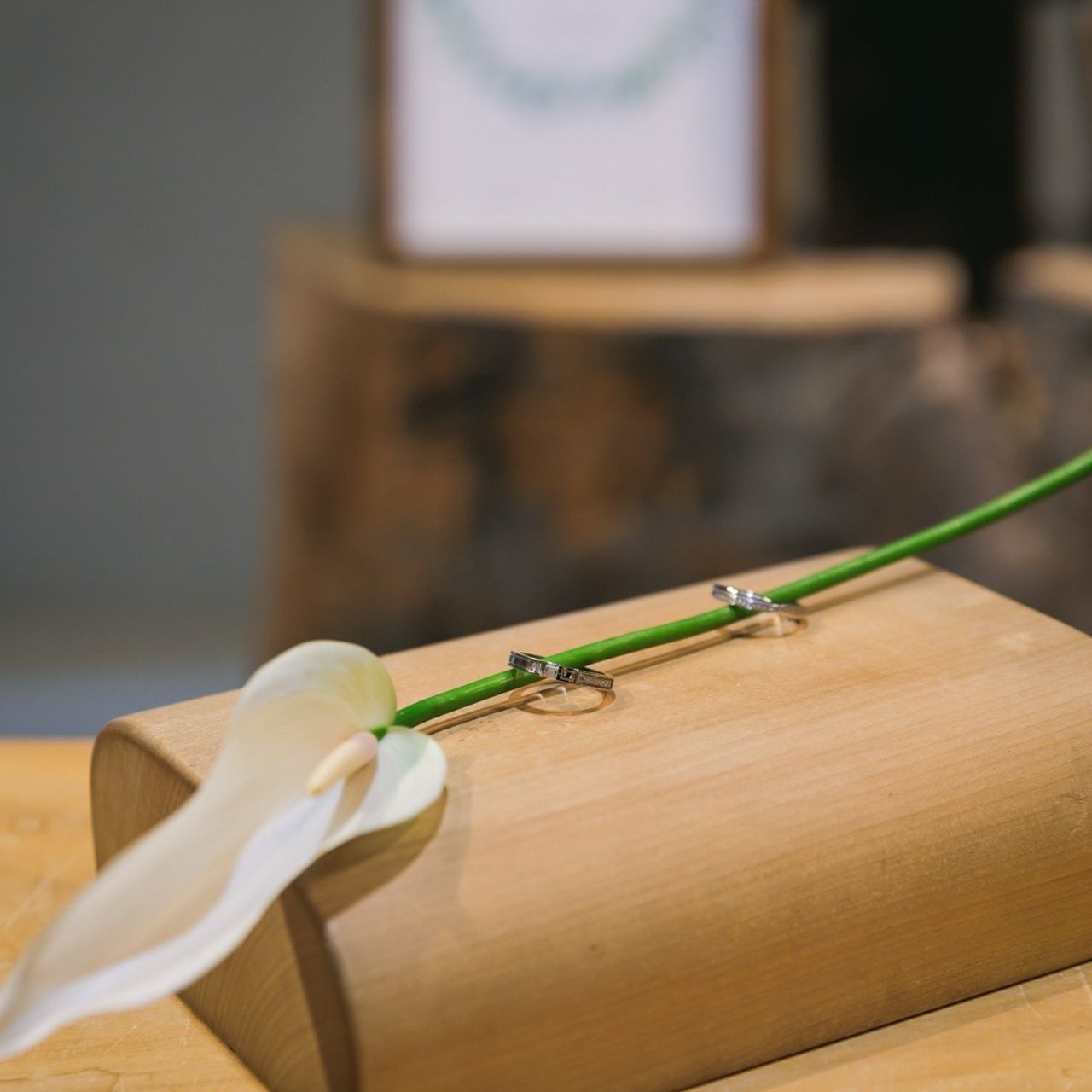 とことん生花にこだわって、お花の茎にリングを通しました。シンプルなのにインパクトがあります。