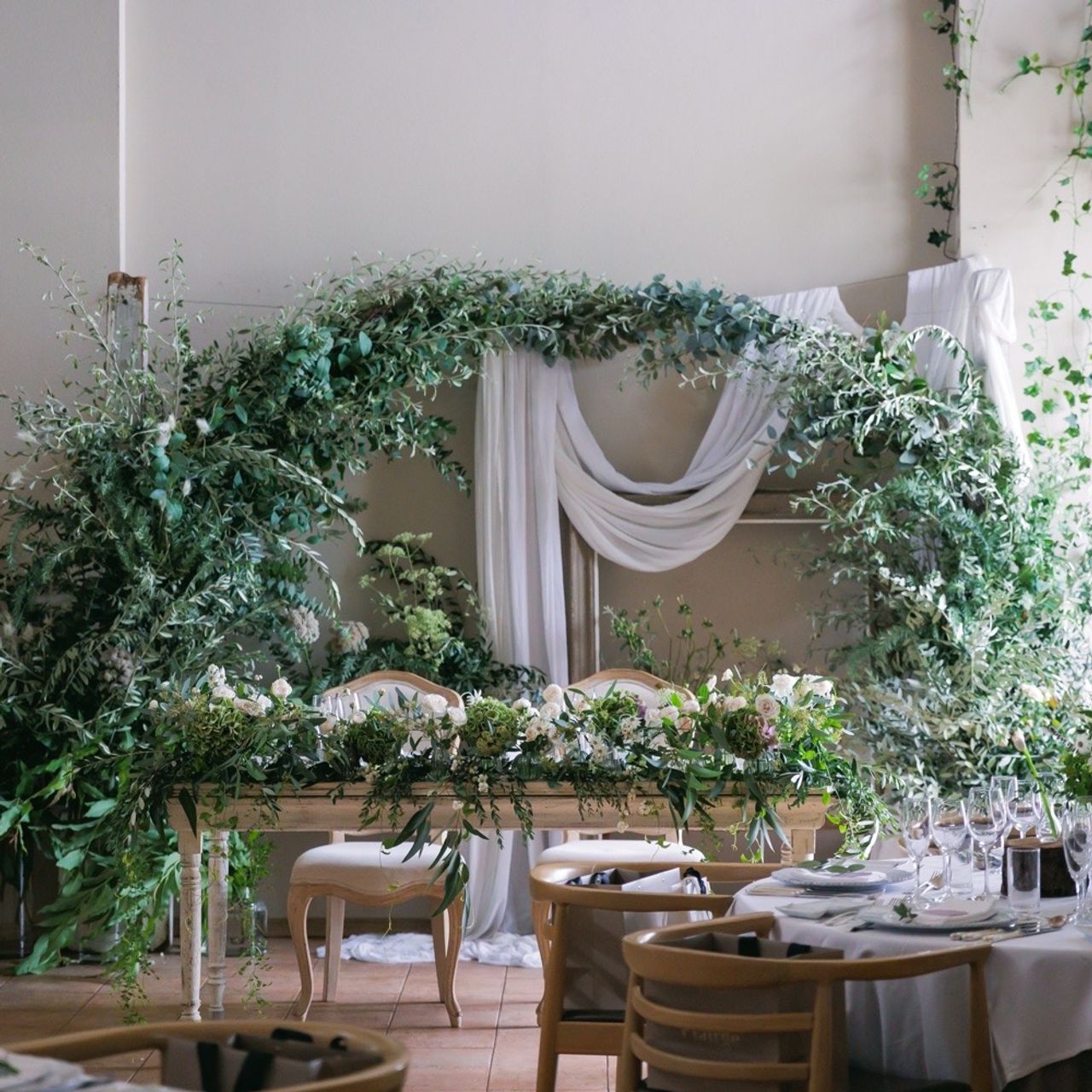 お花の種類にはあまり詳しくなかったのですが、「グリーンをベースに白や薄いピンクなどのアンティーク調のお花を散らして欲しい」「バックはアーチ型でレースや額縁を設置して欲しい」といったざっくりなお願いだったにもかかわらず、理想の装花に仕上げていただしました!