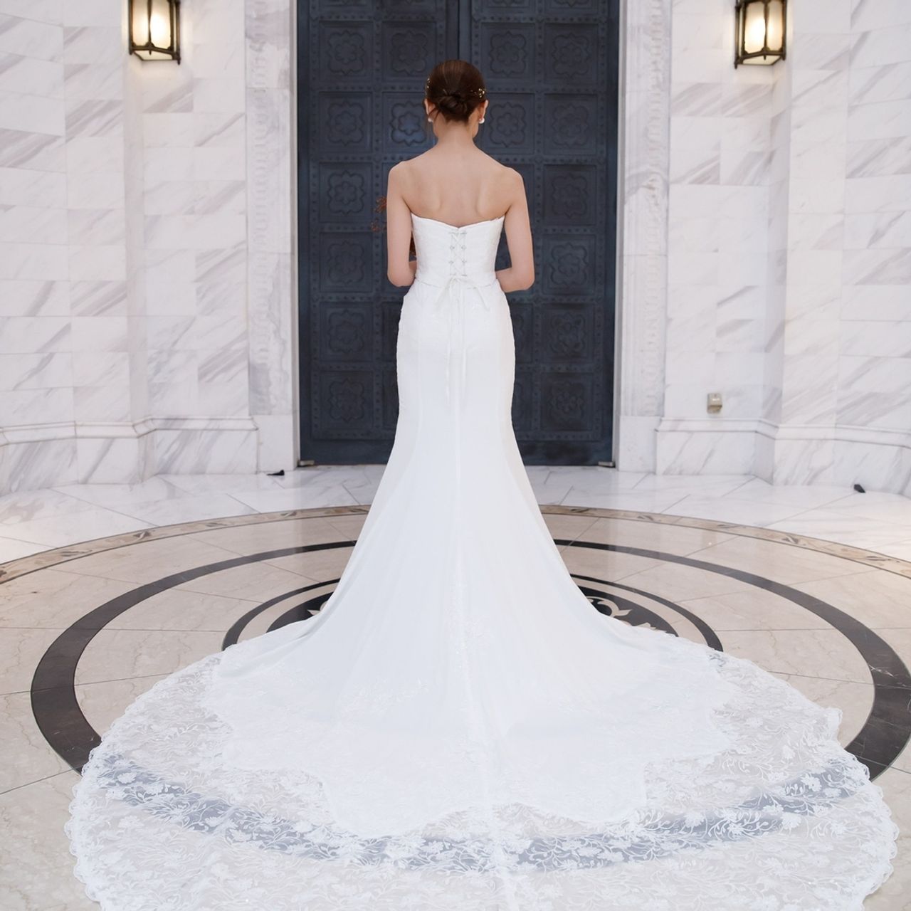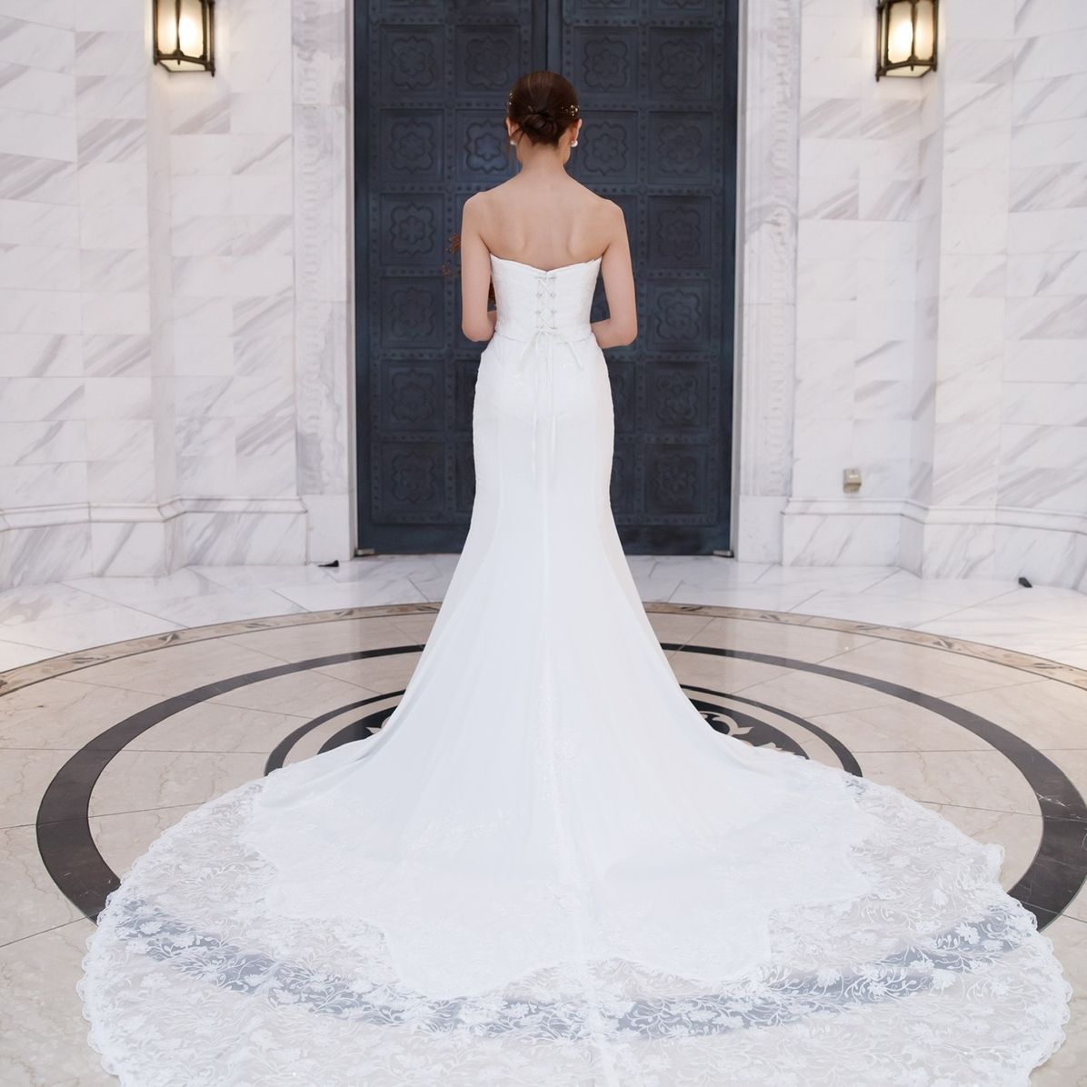 ウェディングドレスはホワイトのタイトマーメイドです。