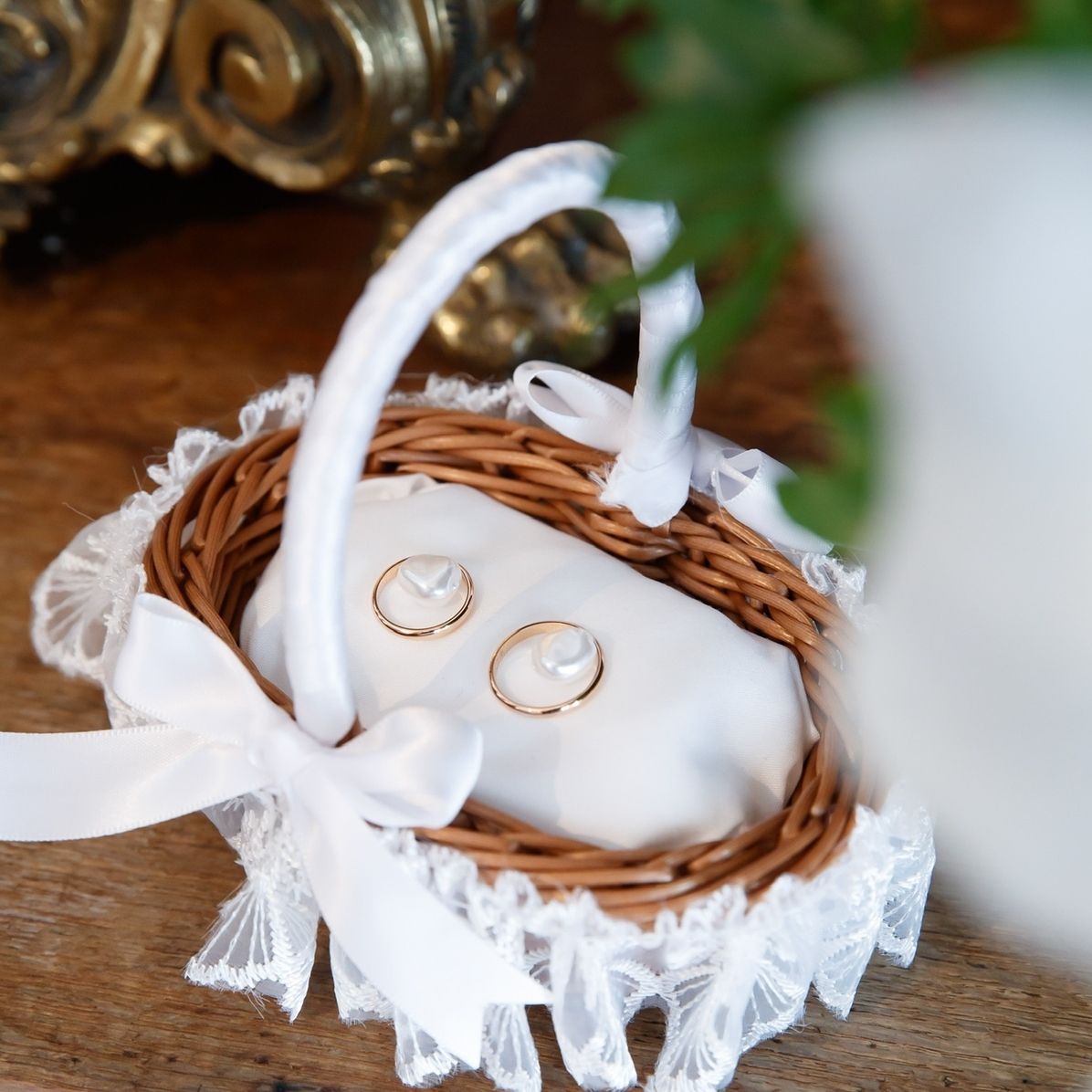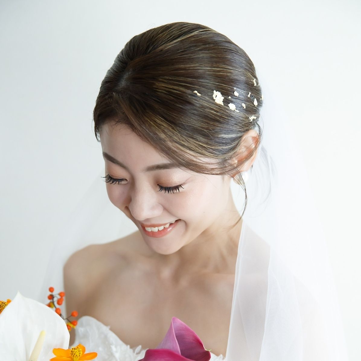 挙式はベールを付けるため金箔のみにしました。