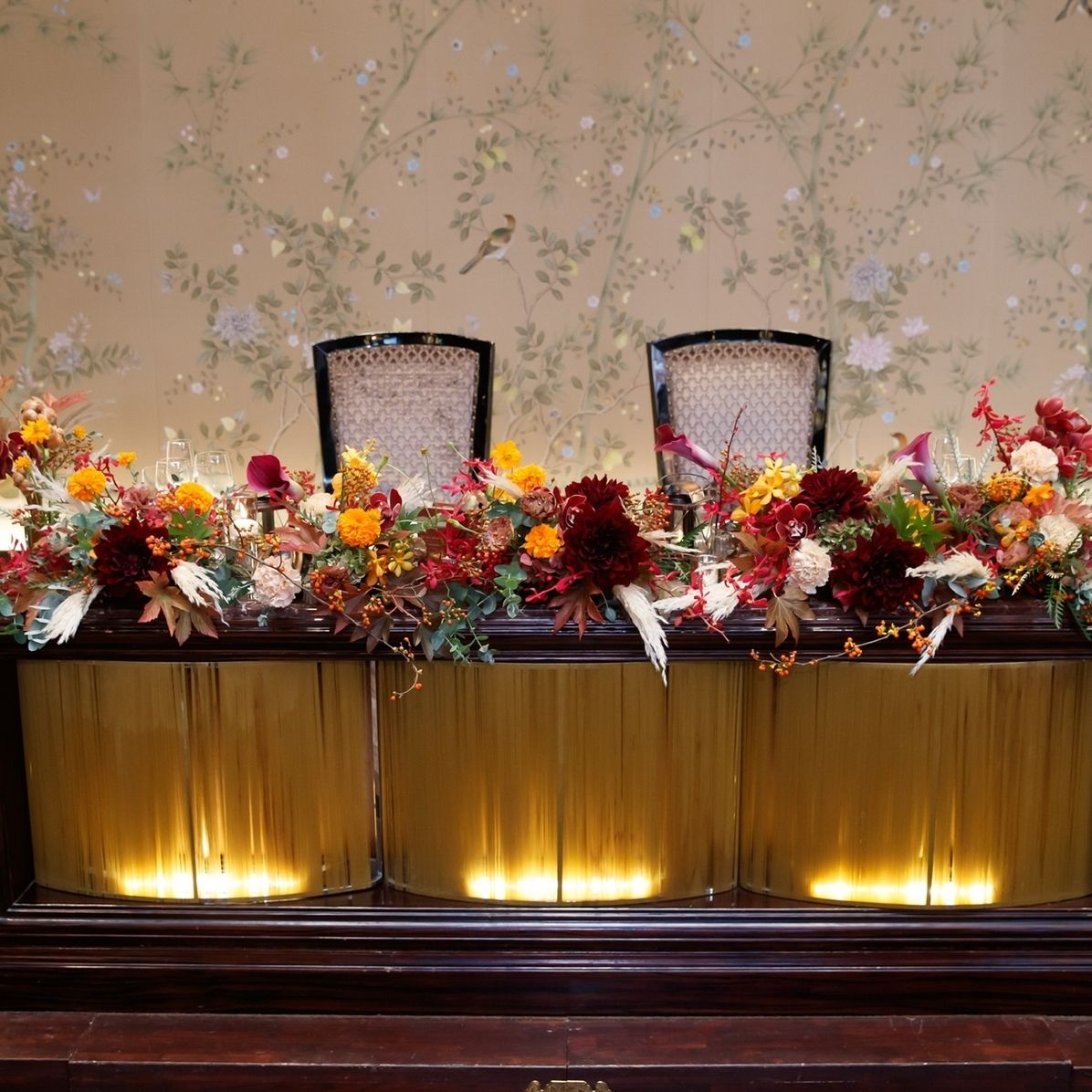 花についての知識やこだわりは特に無かったため、ドライフラワーは避けて秋っぽいトーンで好きな色と雰囲気だけお伝えしています。
