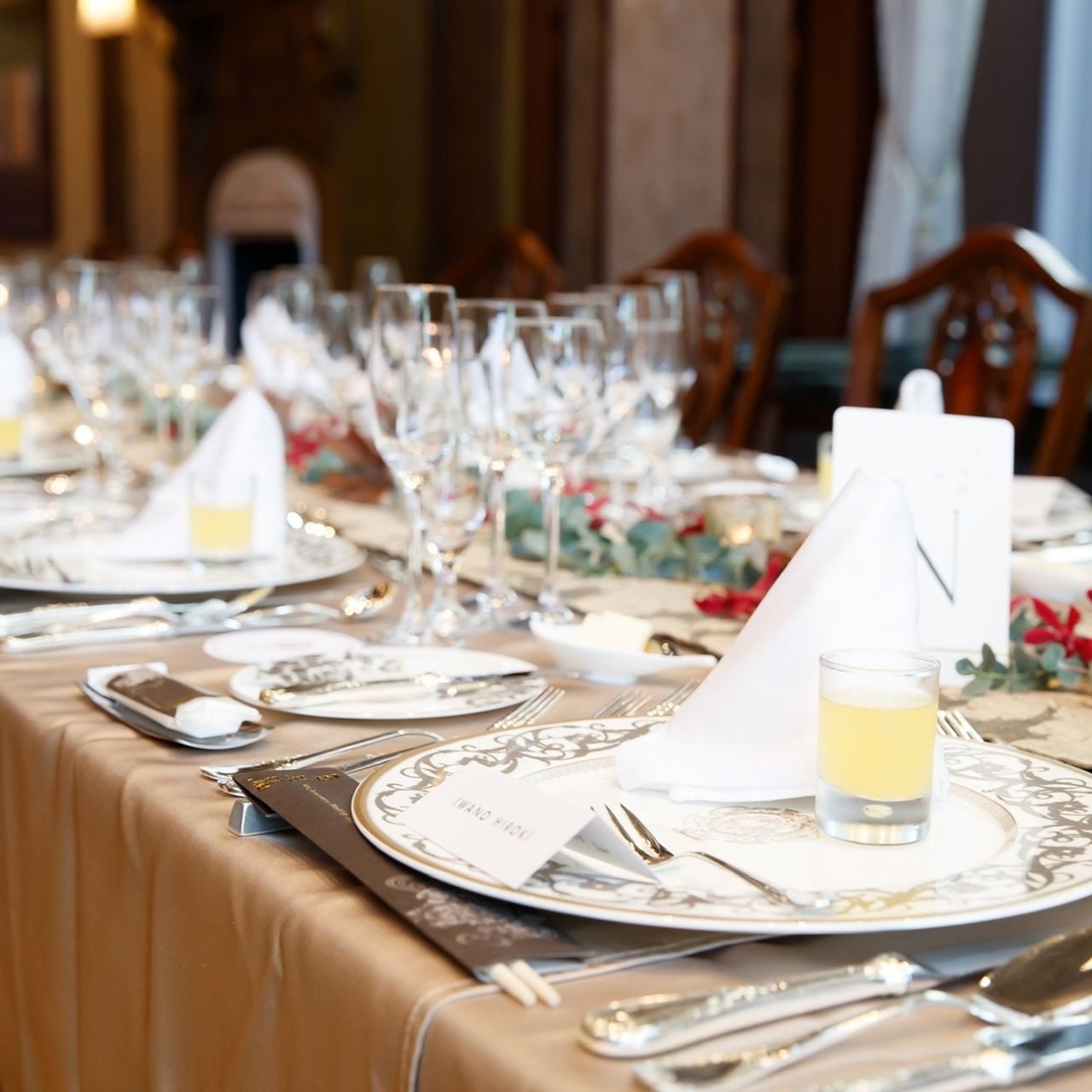 そこはあまり気にしていなかったのですが、確かに招待人数が90名だったので、片側に上手く座りきれず新郎側の友人が新婦側の席にも着席していて、少し申し訳なかったかなと感じました。