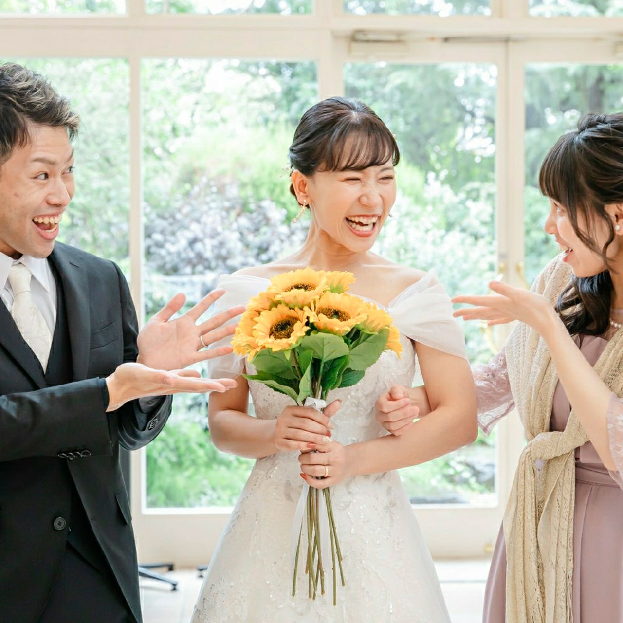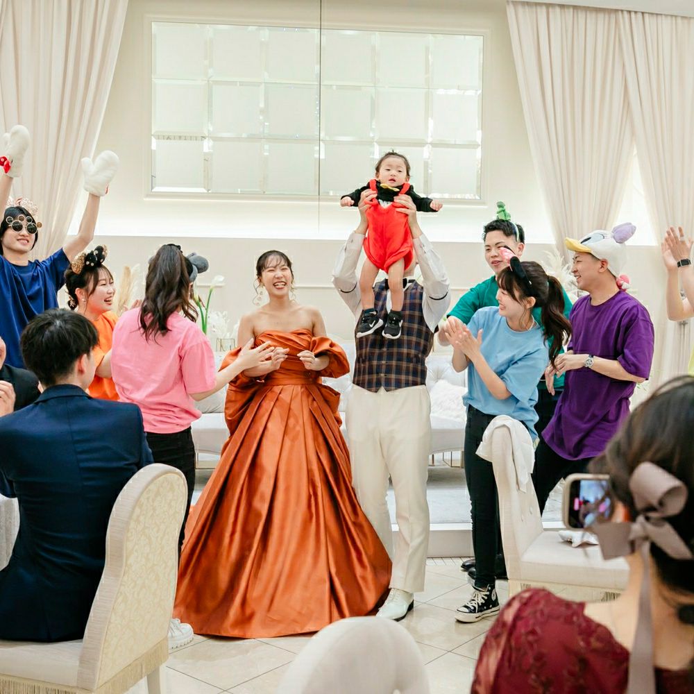 ひまわりを使ったり、2人の好きなアーティストの歌を沢山使ったり、昔二人で踊っていたものを再入場で踊ったりしました♪