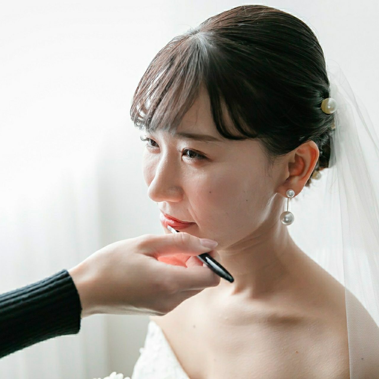 ウェディングドレスでは真珠のパールを頭に沢山つけました♪