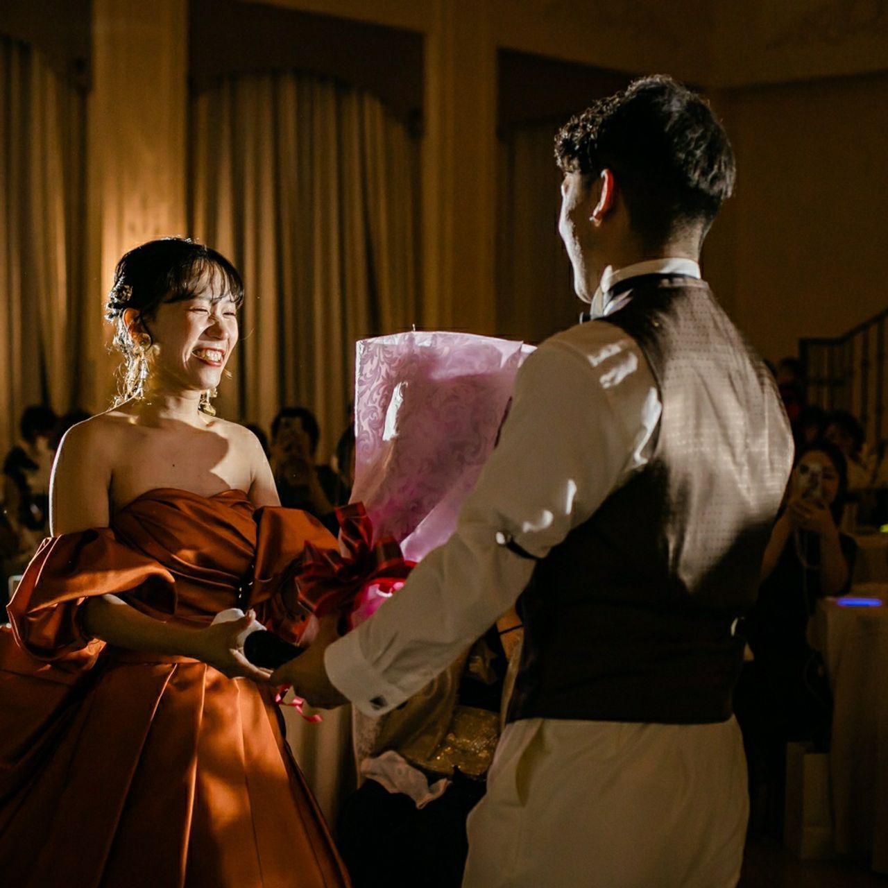ゲストのみんなにも家族にも感謝を伝えられる1回目の出来事が結婚式で、初めて会う入場の前でよかったなと思いました。