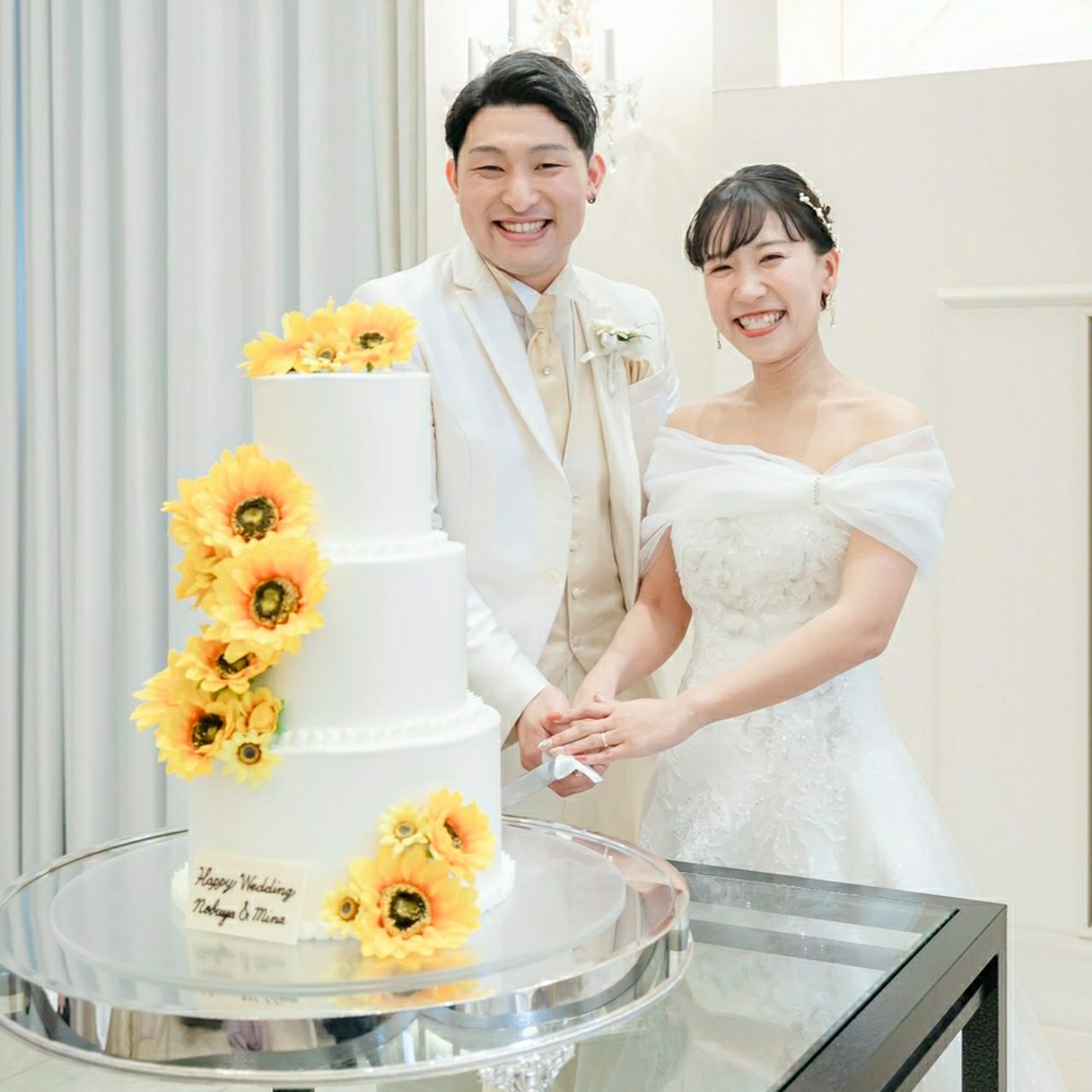 フラワーケーキは高さのあるケーキだったのと、ひまわりを飾り付けたら自分たちらしさも出せると思い選びました。