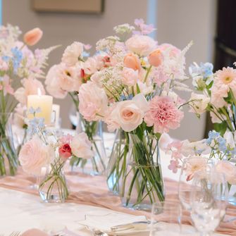 少人数での挙式を考えていたので、家族とのゆったりとした時間を過ごせるアットホームな雰囲気と春をコンセプトにしました💐