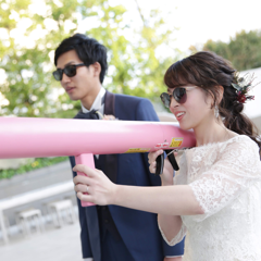 目立ちたがりで楽しいことが大好きな私たち2人は、自分たちはもちろんですが、みんなの記憶に残る楽しい結婚式にしようと決めていました。