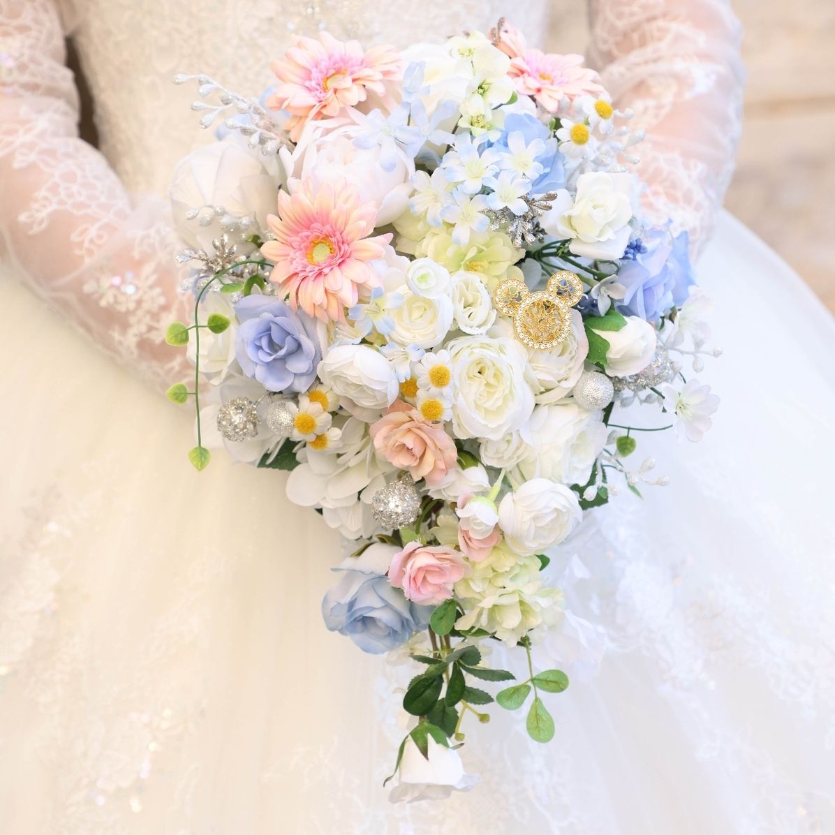 同じドレスを着ることが出来たのと、アーティフィシャルフラワーのブーケだったので2回持つことができました。