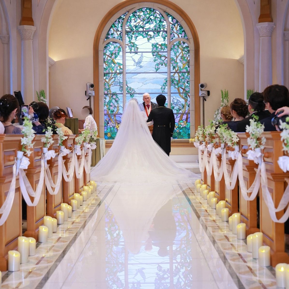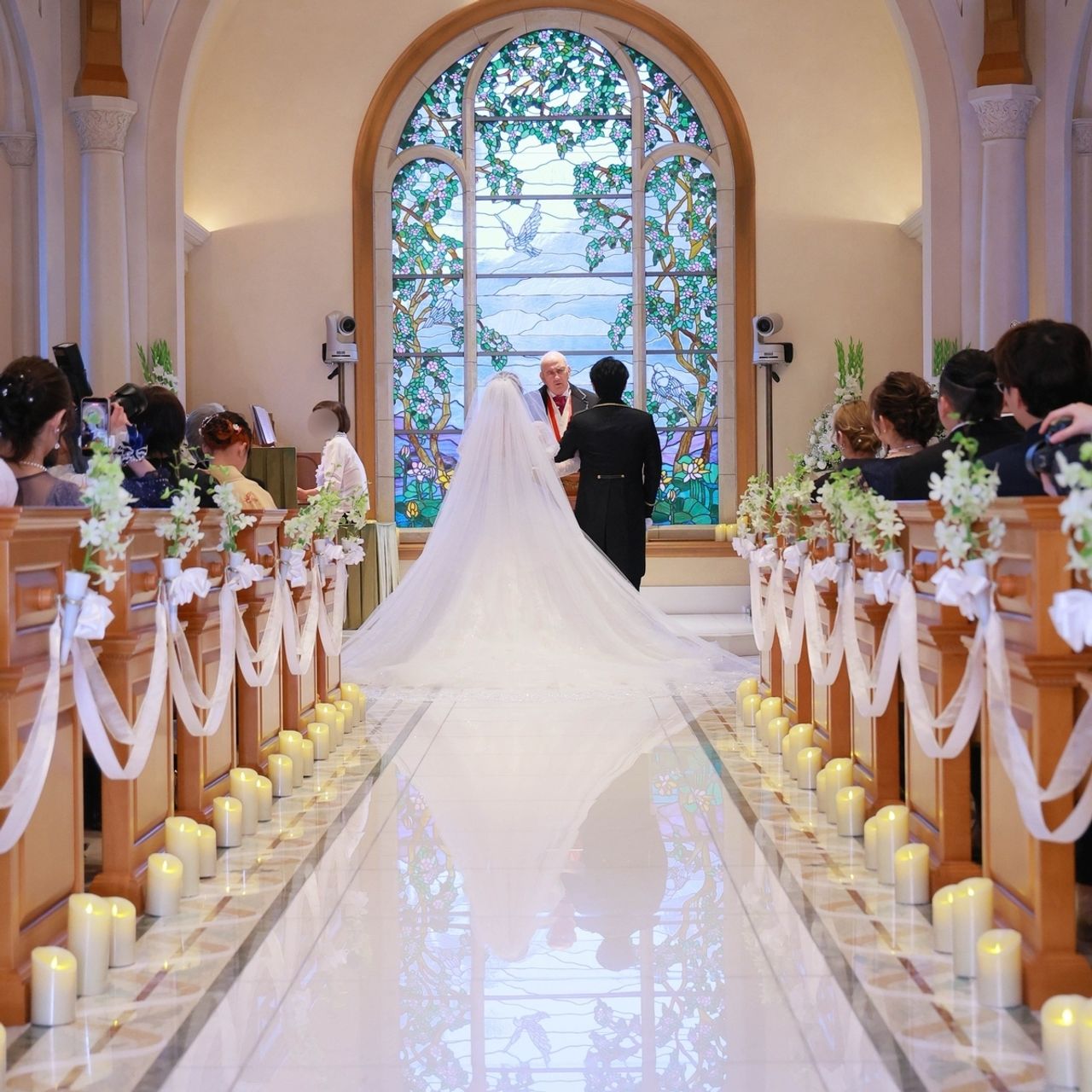 2月末なので思っていたよりもチャペル自体が明るく、肉眼ではあまり目立ちませんでしたが、キャンドルが置かれたことでチャペル全体の雰囲気がよりロマンティックになっており、素敵な写真もたくさん撮っていただきました。