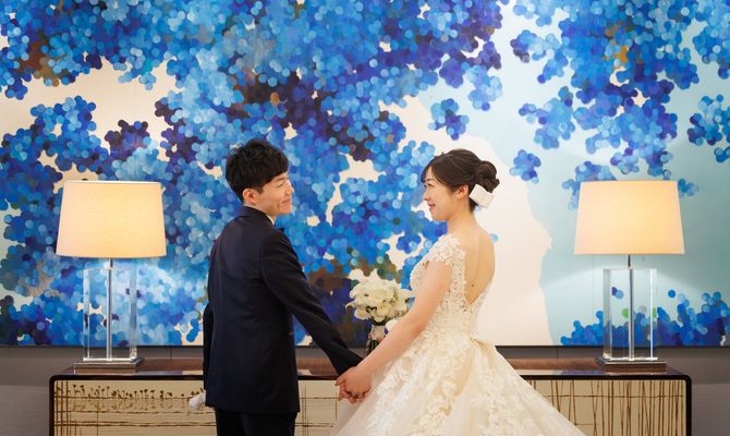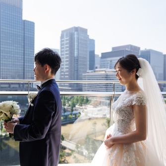 パレスホテル東京(PALACE HOTEL TOKYO)は高校生の頃に広告を見て、ずっと憧れていた場所でした。実際に見学してみて、チャペルの大きな窓、葵西の大きな窓から見える景色、明るい雰囲気が好きでやっぱりここだとなりました。