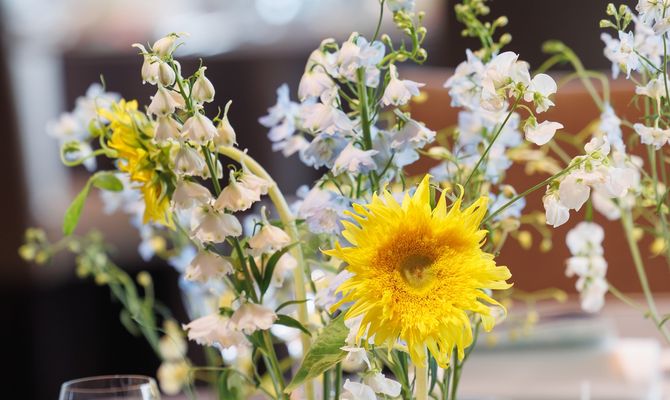 7月の夏婚だったので、ゲストの皆様には暑さを感じない様出来るだけ爽やかさを感じて頂けるよう会場作りにこだわりました。