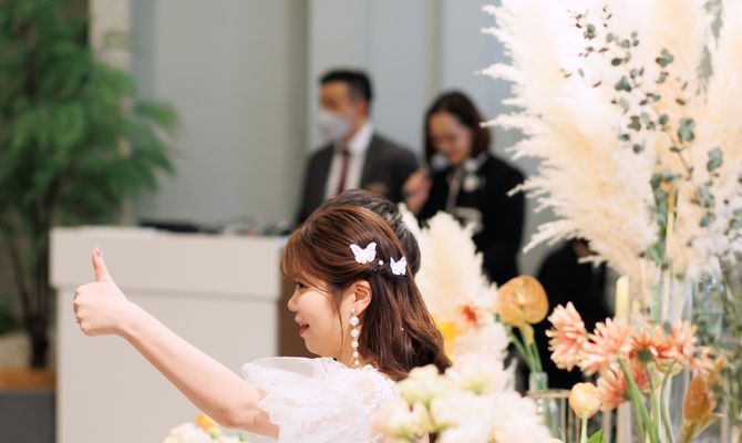 Hilltop Resort YAMANOUEさんを選んだ決め手は、令和のナチュラル婚を体現できる式場だと感じたからです。昔から福岡で愛されるリゾートホテルがリニューアルしてできた新しい式場で、今流行りのテキスタイルやチェア、小物の細部の感度がとても高く、どうしても堅くなってしまいがちな結婚式がより身近でオシャレに感じられました。