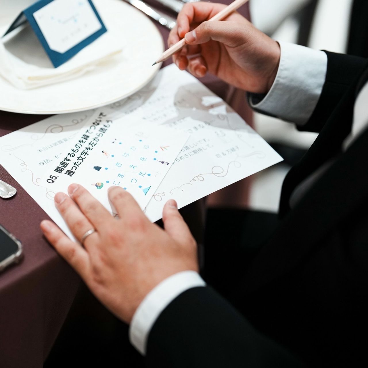 そのため、待ち時間もゲストを飽きさせないよう、2人の共通の趣味である「謎解き」を自作して挑戦してもらったり、ゲストから評判の良いケーキビュッフェを用意したり、サプライズ花火をあげたりしました。