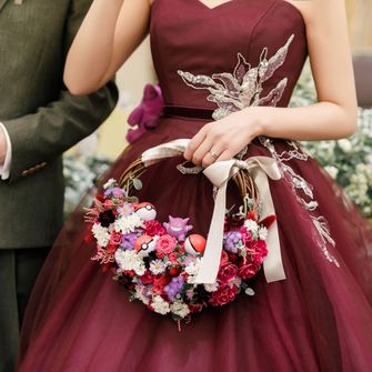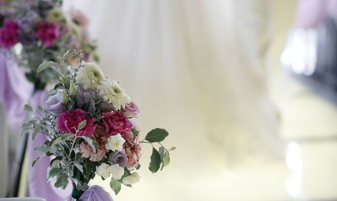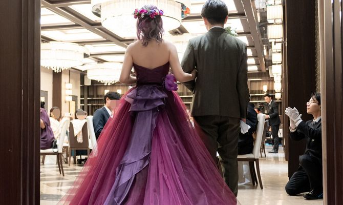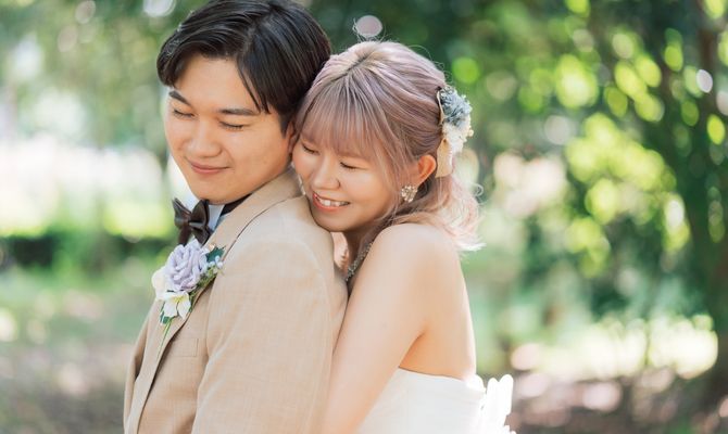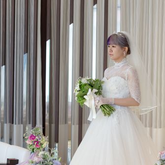 挙式は『王道シンプル』に好きな紫色を少し取り入れ、披露宴では雰囲気をガラリと変え『ポケモンいっぱいで楽しく』をテーマにナチュラルな装飾にしました。