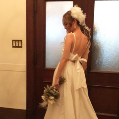ヘアメイクをゴテッと華やかにしたので、抜け感をだし、夏らしく涼しげにしました。