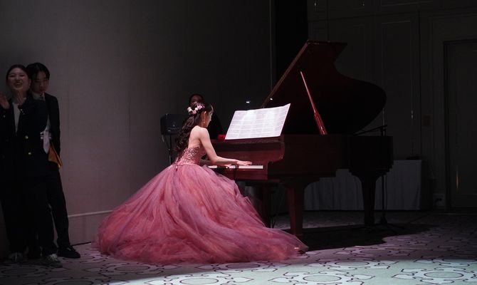 まず、1つ目の意味は「Bond」=絆、繋がりです。ゲストの人数が多い分一人一人との繋がりをしっかり表現し、感謝を伝えることを意識しました。具体的には、エスコートカードにそれぞれとの思い出の写真を盛り込み、ムービーには必ず1人1回以上登場するよう調整しました。