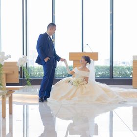 バージンロードも他の式場よりも広く、ドレスが綺麗に見えます。また両親と3人で並んで入場できるのは東京會舘ならではだと思います。そして何よりもカーテンオープンの演出が1番の見所。他の式場にはない演出がとても素敵で圧巻でした。