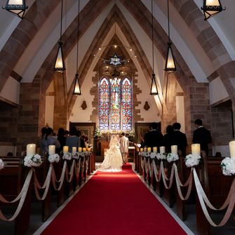 式場選びでは、チャペルのステンドグラスが綺麗な式場に絞って探しました。